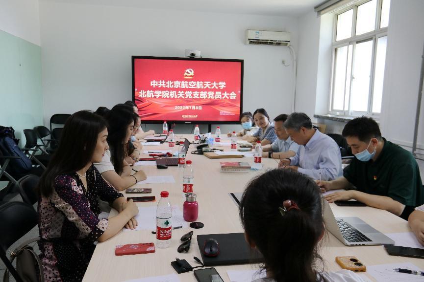 (通讯员 薛秀粘)2022年7月8日上午,北航学院机关党支部组织召开党员大会,黄海军副校长和支部党员同志参加了此次会议。会议由机关支部书记、学院党政办主任范鹰主持。