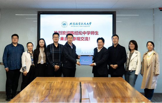 在座谈交流环节,北航学院刘虎院长代表学校对陈经纶中学师生一行的到来表示热烈欢迎,冯如书院执行院长李俊良介绍了北京招生工作情况和科创科普课程共建方案,陈经纶中学教育集团行政书记程木昌、德育副校长张晔介绍了陈经纶的办学理念和两校人才联合培养方面的切实需求。双方还围绕实践基地建设、“大学-高中”创新型人才培养联动等方面进行了深度交流研讨。