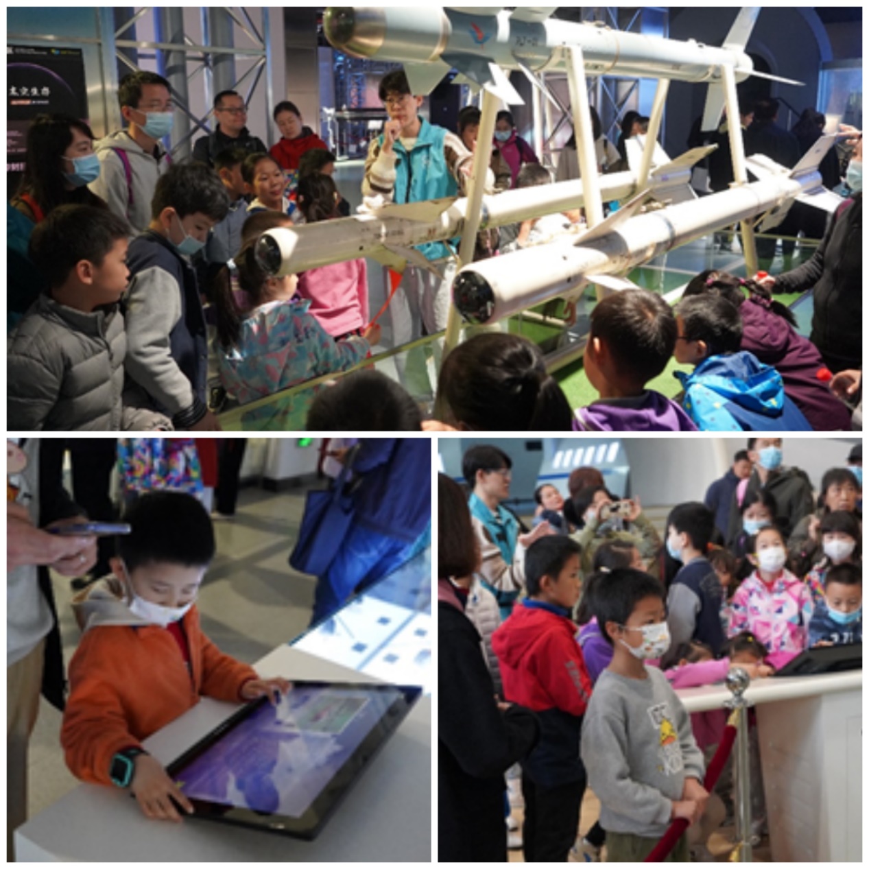 进入博物馆,在讲解员的带领下,老师和小朋友们依次进入“长空逐梦”“银鹰巡空”“空天走廊”“神州问天”展区。黑寡妇、北京一号等30余架国内外珍贵的实体飞机陈列其中,东方红一号、长征系列运载火箭等实物模型深刻诠释了中国航天的发展历程。