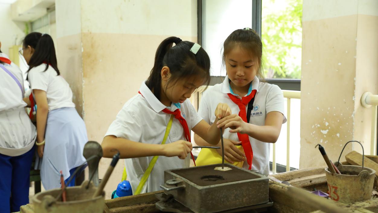 在砂型铸造单元,学生们了解了传统加工制造技术在现代科技工业中的重要地位,亲手翻砂、造型,体验这项传统加工技术。
