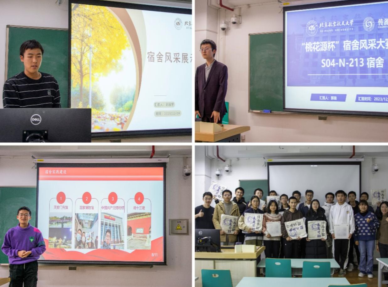 2023年12月14日,传源书院“桃花源杯”宿舍风采展示答辩会在沙河校区J3-408举行。共有9个宿舍参与此次的答辩会。在展示现场,各宿舍代表通过PPT和视频等方式向大家展示了宿舍成员团结一致、勤奋好学、勇于拼搏的精神风貌。他们从宿舍公约、宿舍卫生、学习氛围、宿舍特色活动等方面详细介绍了宿舍风采,充分展现了宿舍成员积极进取、温馨友爱的宿舍氛围。