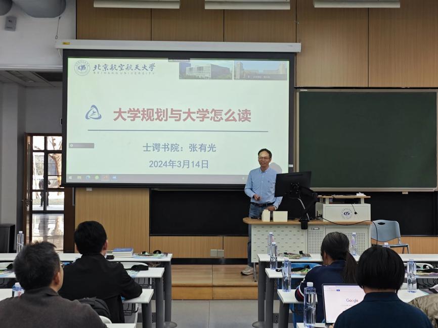 士谔书院学业总导师张有光作《大学规划与大学怎么读》主题报告,他基于大一新生特点进行学情简要分析,提出作为导师要耐心倾听、敏锐感知,面对学生情绪的不稳定性、发展目标的模糊性等要体现包容。结合秋季导学读书会与春季大学规划的整体安排,从理论学习与实验实践多角度,以自身为例分享导学活动经验,抛出“如何看待有用与无用”“追求优秀与保持个性”“一路顺利与挫折教育——鼓励试错”“如何认识迷茫?”等多个问题引发大家思考与讨论。