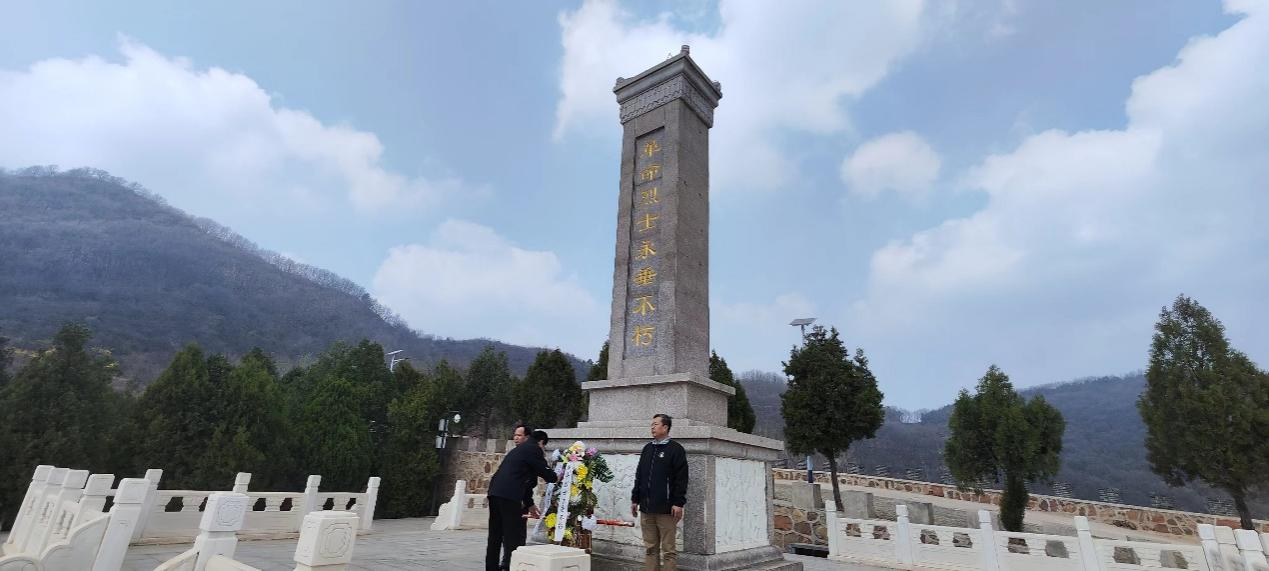 在英烈园,党员和老师们认真聆听讲解员讲述英烈园的建设过程及英烈故事,并举行祭奠烈士的仪式。