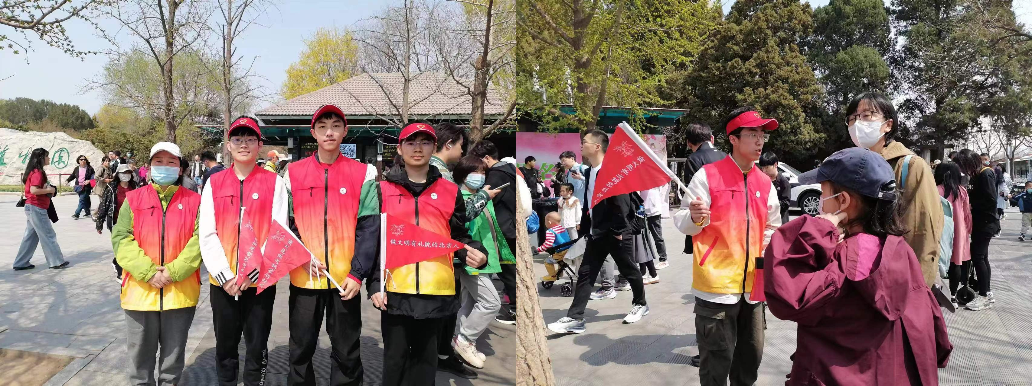 (图为清明假期致真书院志愿服务队的同学参与香山桃花节志愿服务)
