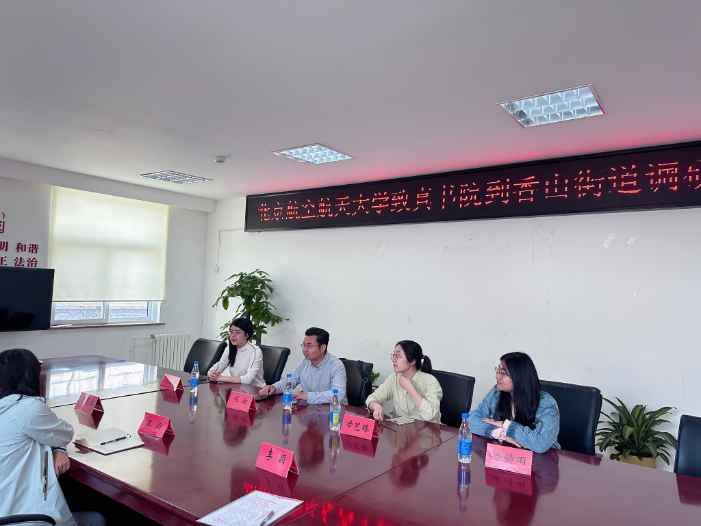 (通讯员 徐婧雨)2024年4月7日,北京伊人99北航学院致真书院执行院长闵敏、团委书记毋艺臻、专职辅导员刘欣童、兼职辅导员徐婧雨等人来到香山街道调研,香山街道团工委负责人王颖、党群工作办公室干部李墨言、团建督导员李颖出席了交流座谈会。