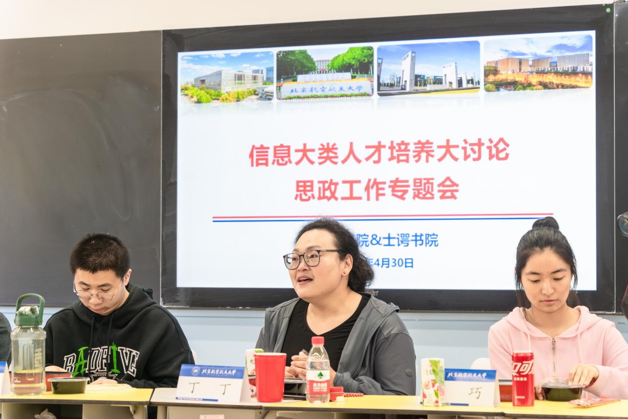 (通讯员 邹雨初 丁赫)为进一步落实人才培养各项重点举措,传源书院、士谔书院于4月30日中午12点在沙河校区J1-103,联合召开人才培养大讨论思政工作专题会。两书院执行团全体成员、各大班学生骨干代表共同参与。座谈交流主题涵盖信息大类书院同学们日常学习生活方方面面,并和思政教育充分融合。