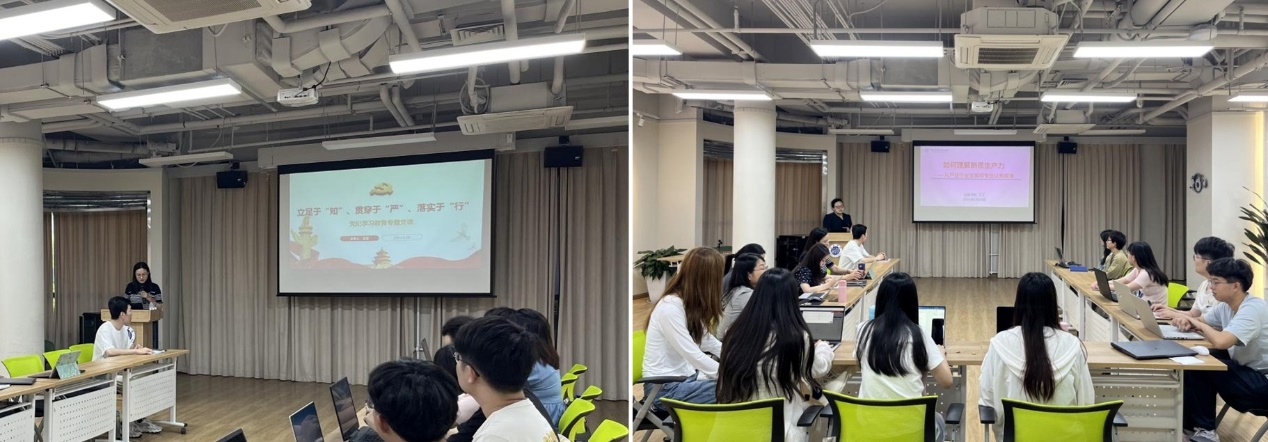 知行书院执行院长、知行书院本科学生党支部书记王亚同志首先带领党员同志回顾了党史上的纪律教育,从学纪、知纪、明纪、守纪方面进行分享,将党纪学习教育立足于“知”、贯穿于“严”、落实于“行”。通过逐章逐句解读《中国共产党纪律处分条例》,引导支部党员切实做到真学真信、守住纪律底线,将纪律教育融入日常、抓在经常,让党员、干部受警醒、明底线、知敬畏,将党纪学习教育成果转化为推动书院工作高质量发展的实效。