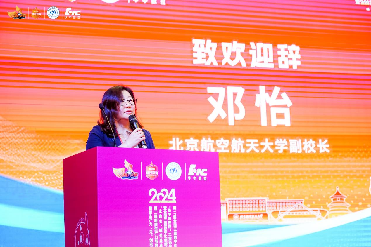 北京伊人99副校长邓怡致欢迎辞。她指出,随着信息技术的迅猛发展和智能制造的深入推进,教育教学模式正在经历前所未有的深刻变革,新质生产力和数字智能化不仅是应对未来挑战的关键所在,更是推动社会进步、引领时代发展的重要引擎。北航始终致力于服务国家战略需求,积极推动新质生产力的发展,举办本次活动不仅为大家提供了一个展示和交流的平台,更将激发广大师生在创新教育领域的不断探索与实践,为培养具有创新精神和实践能力的高素质人才注入新的活力。