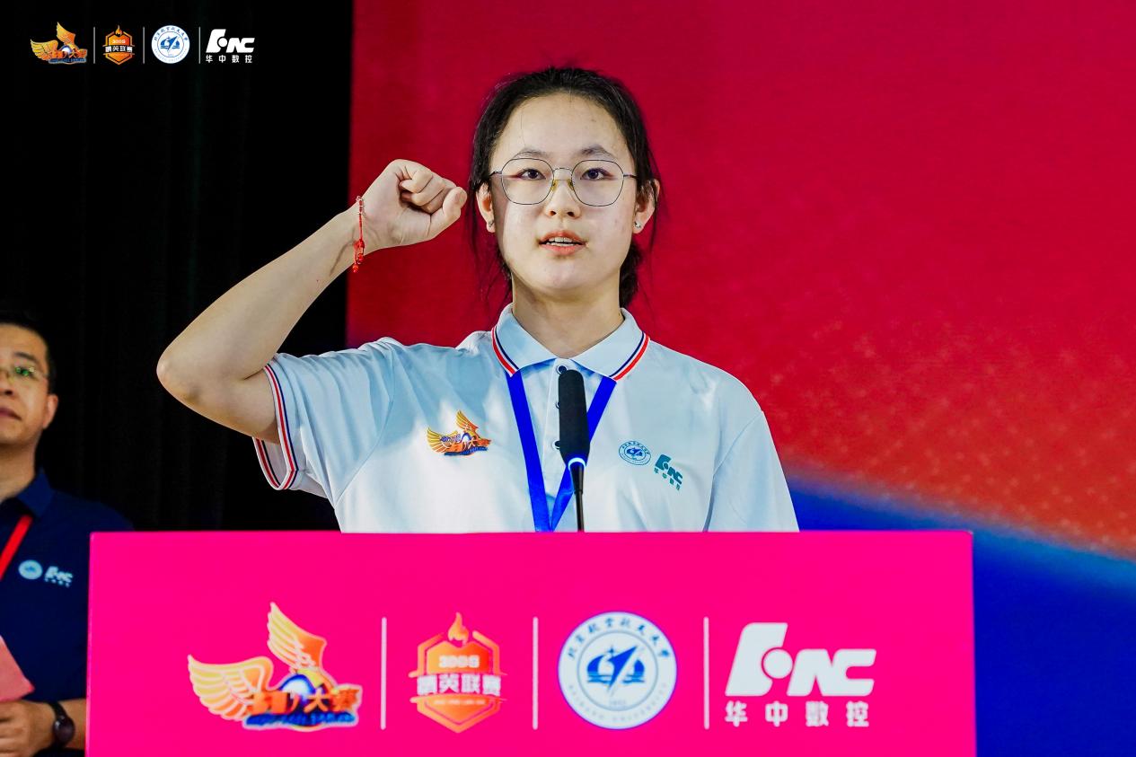 专项赛全国总裁判长、太原理工大学李卫国,参赛选手代表哈尔滨工业大学何彩婷,分别代表裁判组和参赛选手宣誓。