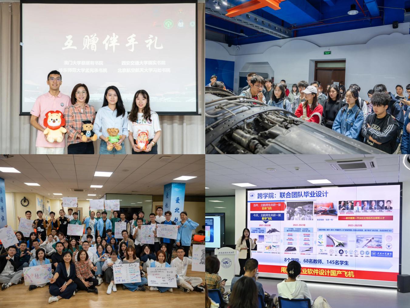 开营仪式上冯如书院执行院长李俊良向三校师生致欢迎辞,对姊妹书院师生的到访表示欢迎,嘱托学生怀有报国之志、感恩之心、谦虚之节,致以真诚的祝福。各书院教师代表分别寄语此次活动并互赠礼物,随后为三个主题小组授旗。四天的行程中书院师生共同游览北京伊人99学院路校区、沙河校区,感受以“空天报国”为内核的北航精神;参观航空航天博物馆、新一代全数字化飞行器科教协同创新中心,领悟科技强国的战略意义;登慕田峪长城、览故宫博物院、观天安门升旗,领略大国首都现代化建设的生动故事和绵延不绝的历史文脉。主题日当天,四校学生分成“人文北京”“自然北京”“中轴北京”主题组深入探访北京经典地标建筑,深入领略了北京这座城市的文化魅力。结营仪式上,三个主题组依次开展主题汇报,分享了自己的所见、所闻、所感,四校教师代表分别对主题汇报进行了点评。“城市文化与发展”四地书院互访计划北京站活动在四校师生的歌声中圆满结束。