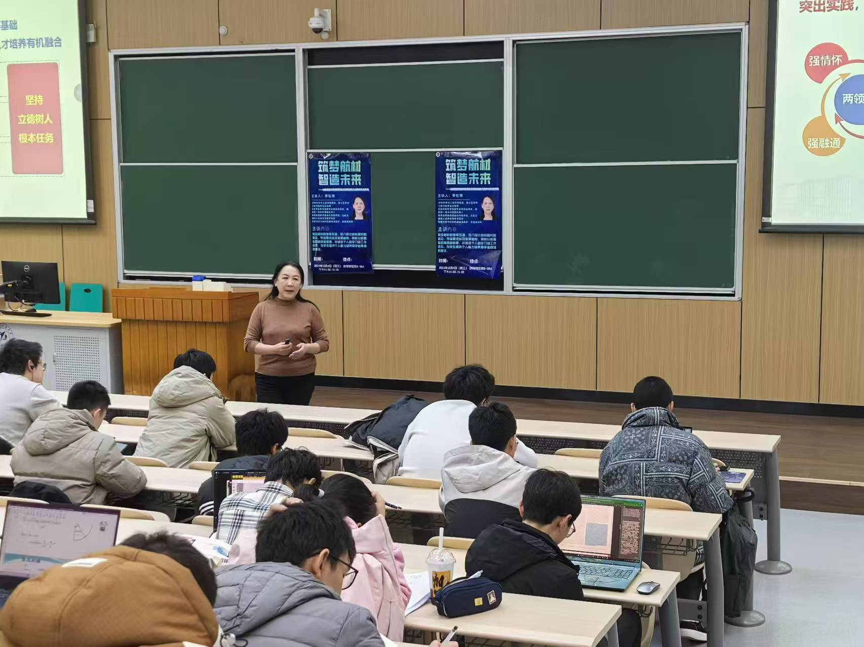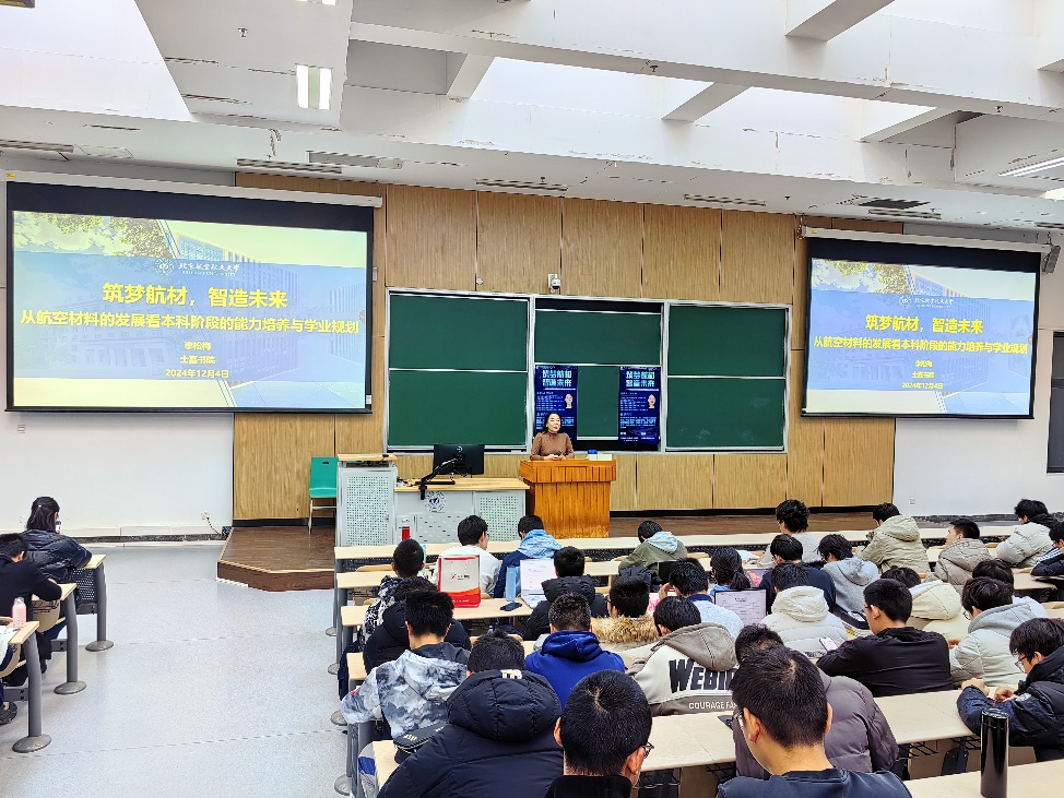 (通讯员 谢贝贝)12月4日下午,士嘉书院于沙河校区教0-004举行士嘉大讲堂第68讲。士嘉书院学业总导师、材料科学与工程学院李松梅教授做《筑梦航材,智造未来—从航空材料的发展看本科阶段的能力培养与学业规划》专题报告。士嘉书院以及来自全校各学院的400余名学生参加了本次讲座。