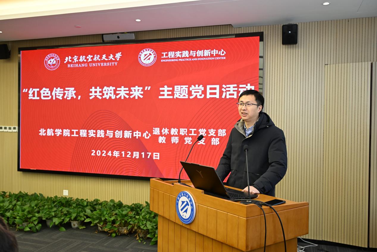 首先,北航学院院长、工程实践与创新中心主任刘虎发表了热情的欢迎词,对退休老同志的到来表示热烈欢迎,并对他们长期以来对中心发展的贡献表示衷心感谢。刘虎指出,老同志们的经验和智慧是中心发展的宝贵财富,希望通过此次活动,进一步加强与老同志的联系,深化党组织间的交流合作,传承红色基因,共同谋划中心未来发展蓝图。
