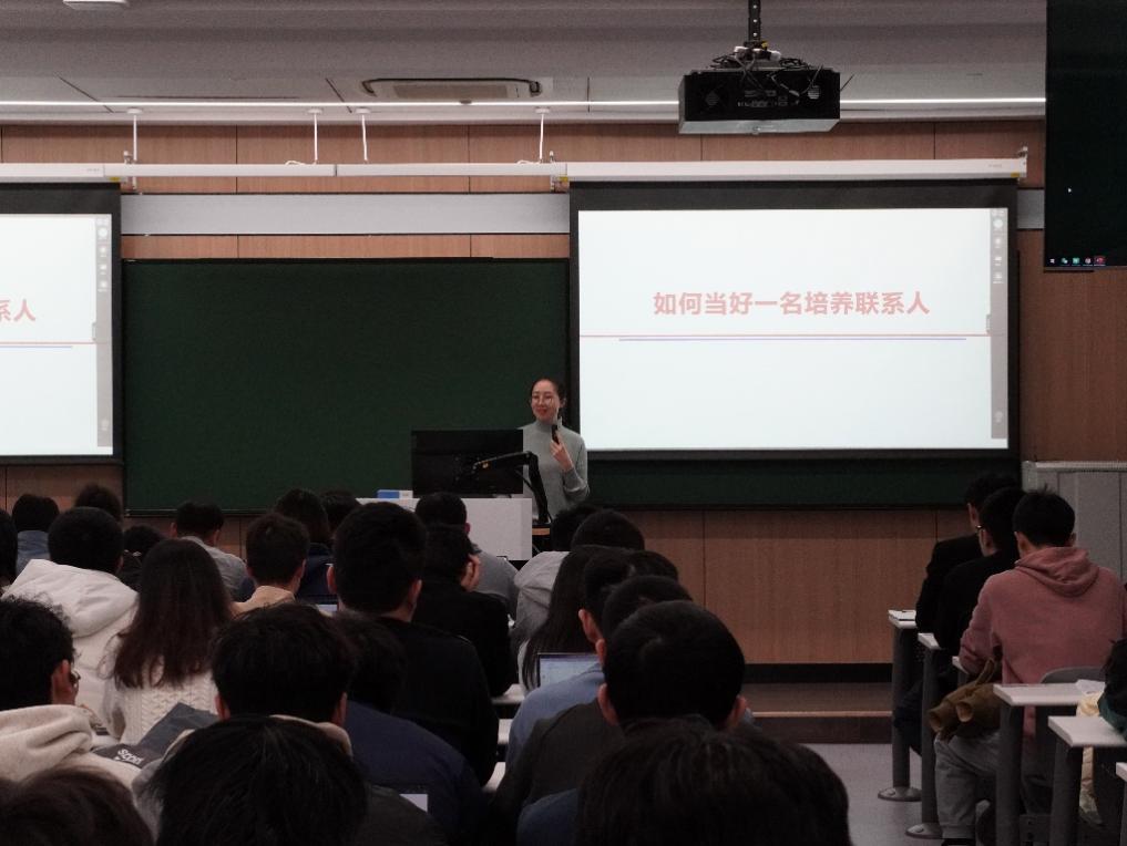 士谔书院团委书记郑婷予介绍了“一站式”学生社区功能型党支部成立的背景、组织架构以及承担的工作,并就“如何当好一名入党联系人”提出几点建议,希望各位培养联系人可以切实履行自身职责,协助书院完成积极分子的培养,做好“红色梦拓”,成为入党积极分子的“领路人”和“养护人”。