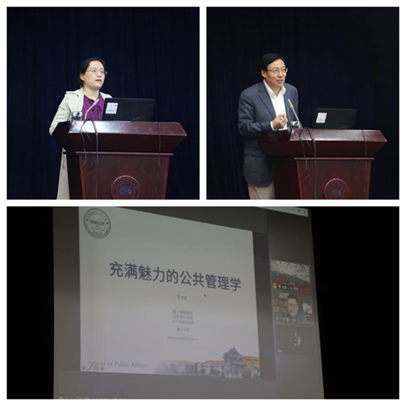 行政管理系系主任涂晓芳副教授从学习内容、培养优势以及未来发展三个部分,阐释了行政管理专业专业化、个性化的培养优势。任建明教授从公共管理的长期竞争力及重要性两方面进行补充介绍,希望“真正有志于影响并决定国家未来命运的年轻人来到行政管理专业”。厦门大学公共事务学院特聘教授于文轩教授通过腾讯会议远程助力,给予同学们专业选择和行政管理专业学习的指导建议。