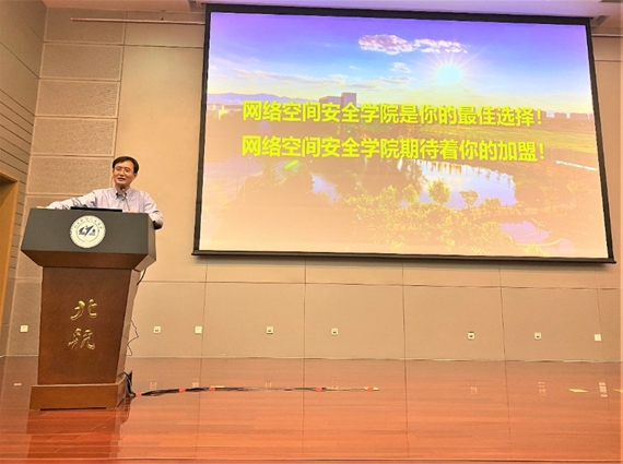 网络空间安全学院院长刘建伟教授从为什么选择网络空间安全学院、来到网络空间安全学院学什么、走出网络空间安全学院后做什么三个问题出发,全方位、多角度的向士谔书院2020级学生介绍了网络空间安全学院。本次报告采用线上线下同步进行的方式,400余位士谔书院学子在现场聆听了讲座。