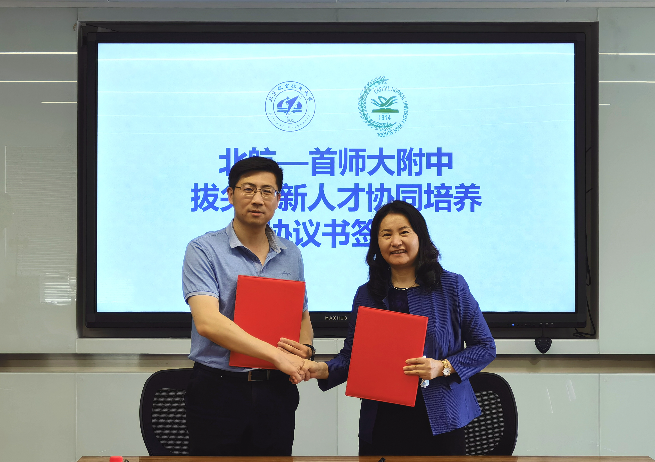 (通讯员 申泽鹏)为有效促进北航在北京地区招生宣传工作开展,持续加强北航与优质中学拔尖创新人才协同培养,5月28日上午,北京伊人99与首都师范大学附属中学在北航知行南楼305会议室就拔尖创新人才协同培养举行座谈并签署协议。