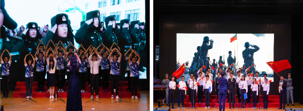 除了师生间的浓厚情谊,在激烈的比赛过程中,涌现许多精彩演出的高光时刻,如207519班手语搭配演奏的《国家》,诉说着钟情温柔的家国情怀,207524班的《我们走在大路上》和《平凡之路》,在古典与流行的交响中,颂唱着中国共产党带领下中华民族的伟大复兴之路。器乐与人声的完美配合,短剧、朗诵、舞蹈与合唱的有机融合,都让比赛现场充满了生机与活力。那飘舞的党旗,动人的歌声,庄严的气势,无一不展示着嘉士们昂扬向上的风采,表达对党百年诞辰最真挚的敬意与祝福。