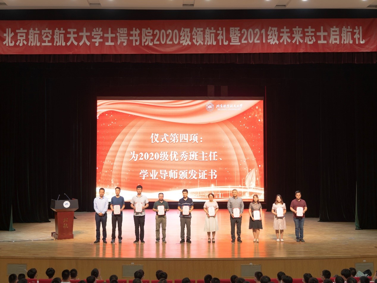 士谔书院学业总导师张有光为辛苦付出的士谔书院2020-2021学年优秀班主任和优秀导师代表颁发荣誉证书,北航学院院长钱政为新聘任班主任和学业导师颁发聘书。林辉女士为新聘任梦拓导生颁发聘书。本学年,书院从各专业学院聘请了76位导师和18名班主任,并从2020级同学中选拔了147名梦拓导生,将通过组织小班交流、开设大学规划研讨课、指导创新实践、开放实验室等多种形式,在理想信念、人生规划、大学学习、生活适应等多个方面为同学们传道授业解惑。
