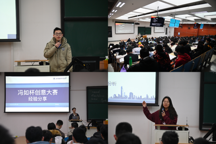 在“冯如杯”竞赛获奖经验分享环节,第三十届“冯如杯”学生学术科技作品竞赛一等奖获奖者覃子宇同学强调要围绕项目的意义和创新点进行选题,注重实用性和新颖性,积极克服困难、保持乐观,平衡好科技实践与学习生活;第三十届“冯如杯”哲学社会科学类学术论文一等奖获奖者张良璐同学结合自身参赛经历,分享参赛技巧与选题方式,强调注重论文的框架和格式,注重国家发展方向、社会热点,选择有吸引力的主题,着重突出项目成果;第三十届“冯如杯”学生创意大赛特等奖获得者洪铭锟和金怡杉同学鼓励学生们细心观察生活,天马行空地进行想象,进而完善主题、保障可行性,同时积极向学长学姐老师寻求帮助,锻炼自己的综合能力。