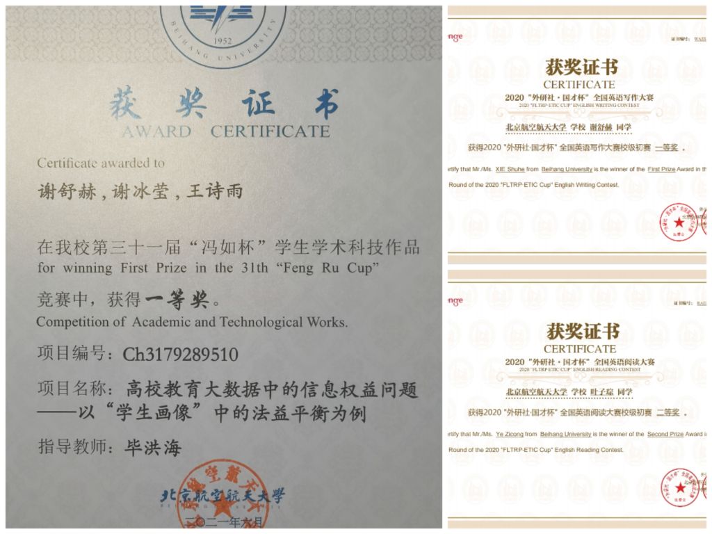 【文以载道,学海求索】全班同学依托书院导师制参与导学活动166次,围绕《理想国》《论语》等中西方经典著作创作逾百万字的《文茵》作品集。积极参与科技创新与学术竞赛。谢舒赫团队以大一学生身份,与高年级学长学姐同场竞技,力拔头筹,获得北航学生学术科技竞赛最高荣誉“冯如杯”一等奖,这是知行书院成立以来最好成绩。班级50%同学在 “国才杯”“人文杯”等多项竞赛中斩获佳绩。