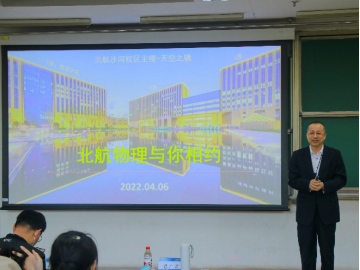 吕广宏院长介绍了北航物理学院在凝聚态物理、理论物理、光学物理、粒子-原子核物理、等离子体物理、空天物理和医学物理等方面的具体研究方向,点明北航物理学院“入流+特色”的学科建设特点,同时说明物理学院“明德至善、格物致知”的人才培养定位。