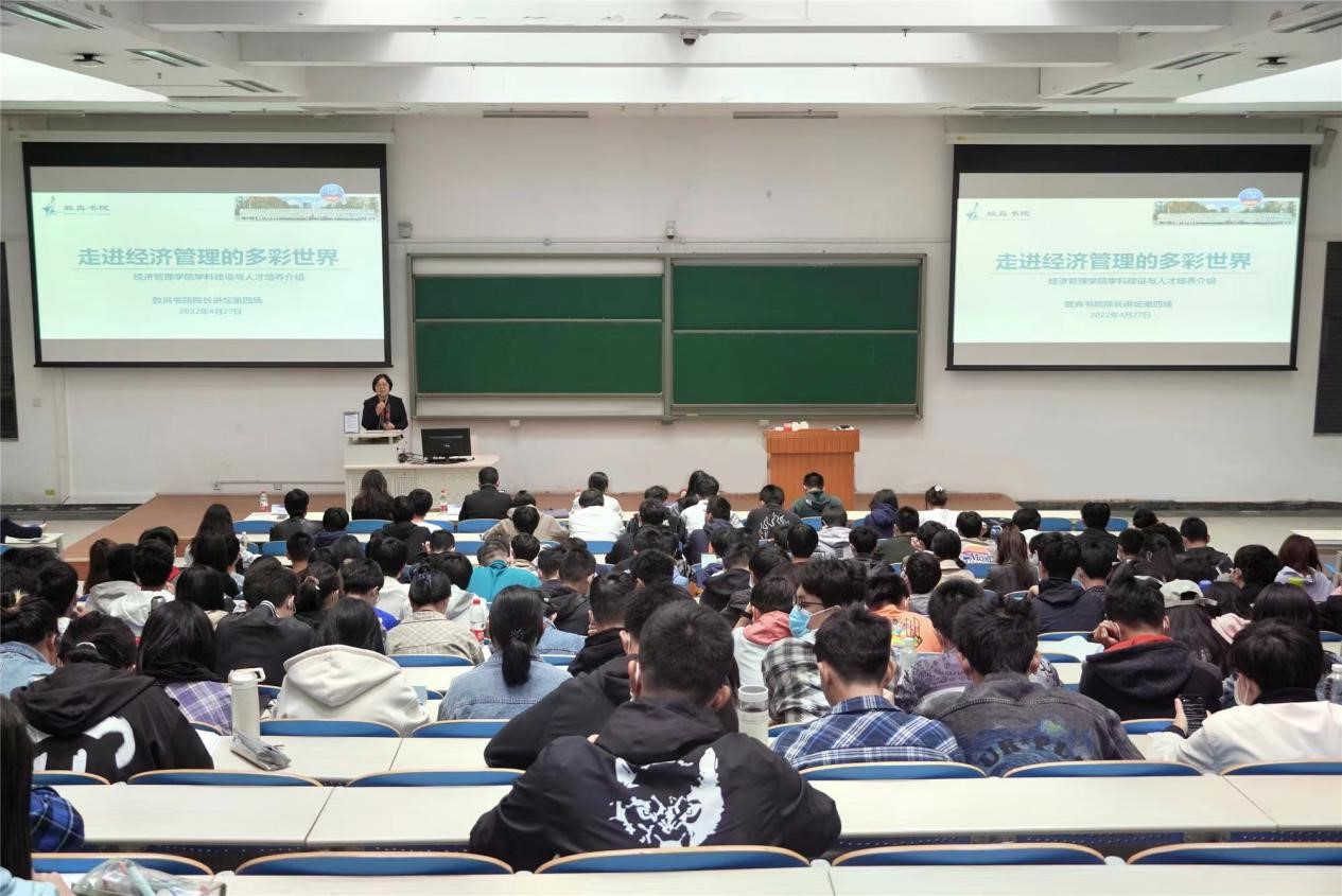 随后,范院长向同学们全方位、多角度、分层次地介绍学院的管理科学与工程、应用经济学、工商管理、统计学4个一级学科,学院已经形成以管理科学与工程为龙头,工商管理、经济学、统计学综合交叉、协调发展的学科生态。范院长强调经济管理是学以致用、顶天立地的科学,学院始终坚持“强基础、宽口径、学科交叉融合”的大类培养要求,致力扩展学生的知识面、增强综合素质、提升强大的思辨能力,将大数据特色融入各个专业的方案,开展教学模式创新、搭建多层次分阶段的时间和实验教学体系、组织经济管理特色的第二课堂活动,培养具有科学精神、专业技能、人文素养、积极心理和管理者禀赋的高素质人才。