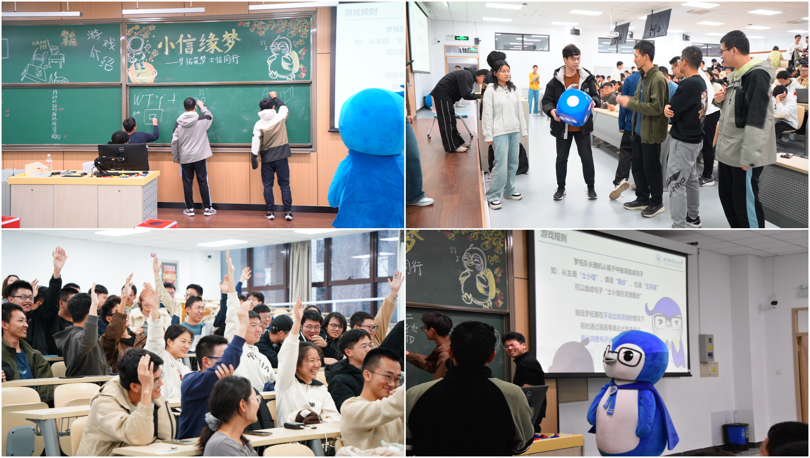活动包含了“你画我猜”“趣味问答”和“互动彩蛋”环节,旨在加强同学们对梦拓文化、书院文化、学院文化以及北航文化的了解,展现士谔学子积极向上的精神面貌,让梦拓和新生们在轻松愉快的氛围中加深友谊。